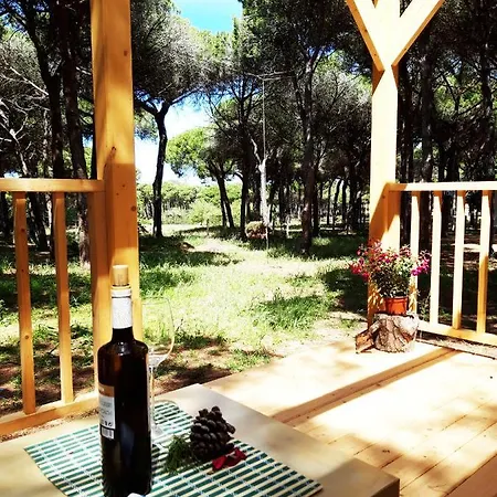 The kitchen amenities at The Pineforest Cabin feature an electric kettle, a refrigerator, and kitchenware, provided in an outdoor dining area. La Nina Del Jamon is a restaurant serving Spanish dishes in the vicinity of the Chiclana de la Frontera accommodation. The Pineforest Cabin is also in the immediate vicinity of Lucas Parrado bus station.